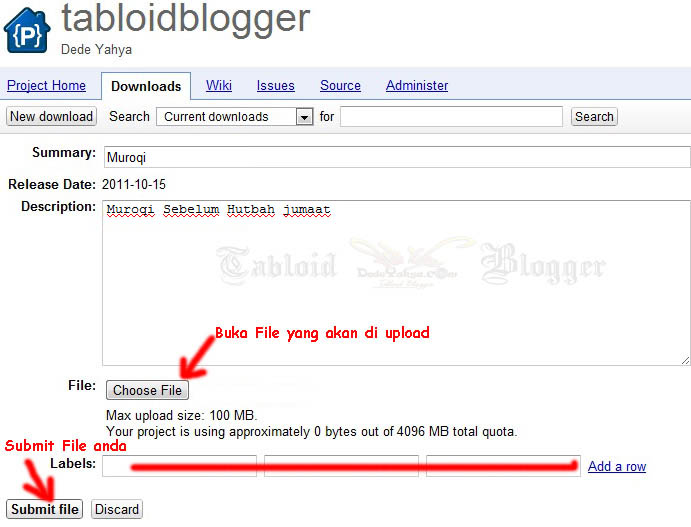 Coba saja anda klik link diatas maka akan keluar file yang telah diupload tadi. Mudah-mudahan cara upload file di google code ini berhasil.